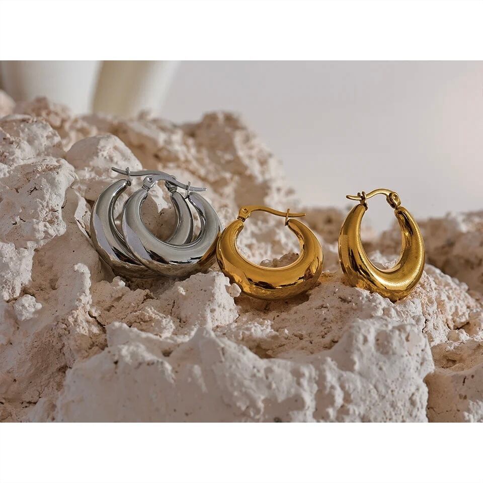 #p3-g クロワッサンフープピアスゴールド Hoop Design Pierce Gold 316L サージカルステンレス
